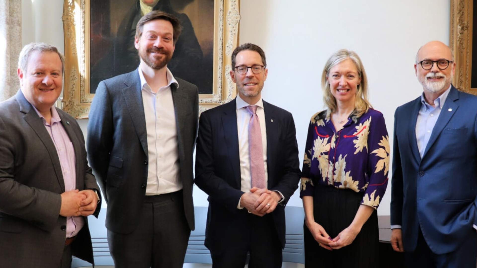 De gauche à droite : Mario Rigante, président régional, Est du Canada, BMO Gestion privée ; Dr Simon Ducharme ; Grégoire Baillargeon, président, BMO Québec et vice-président du conseil, BMO Marchés des capitaux ; Stéphanie Riddell, présidente-directrice générale, Fondation de l’Hôpital général de Montréal ; et Daniel Jarry, directeur, Opérations et soutien aux collectivités, BMO.