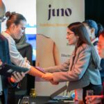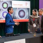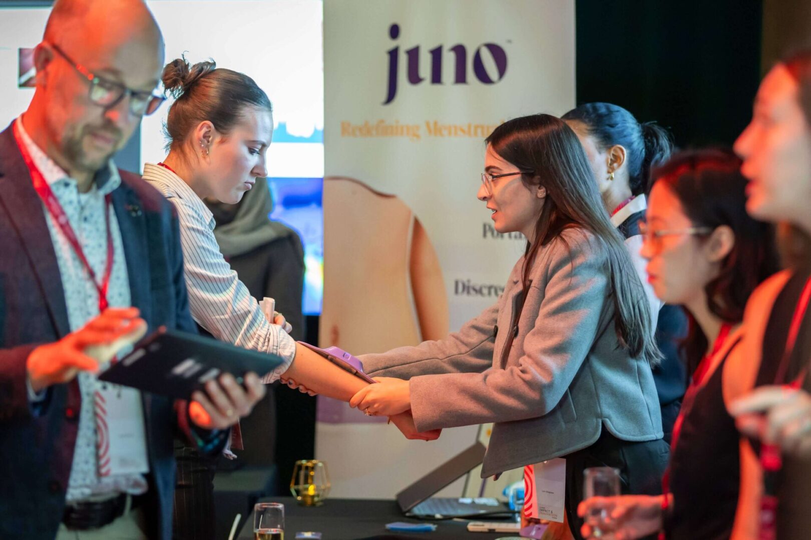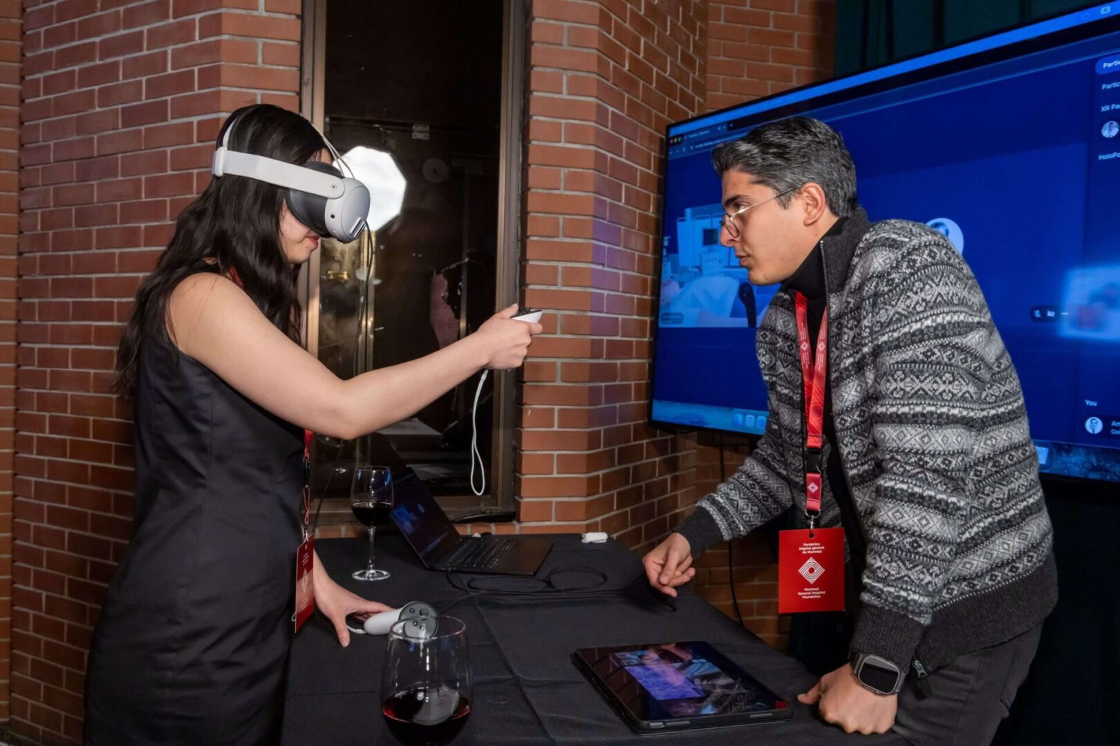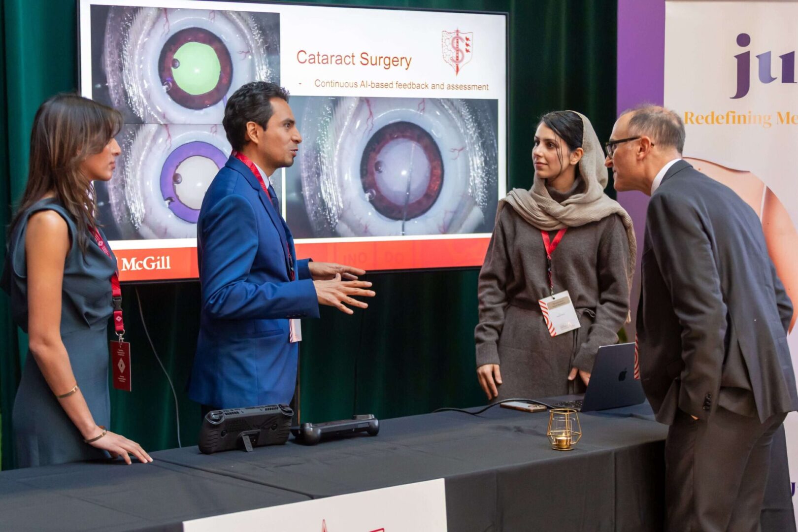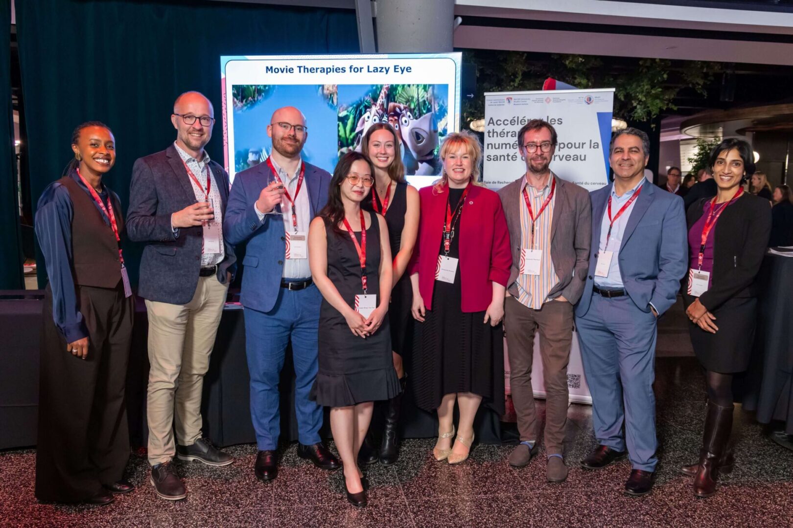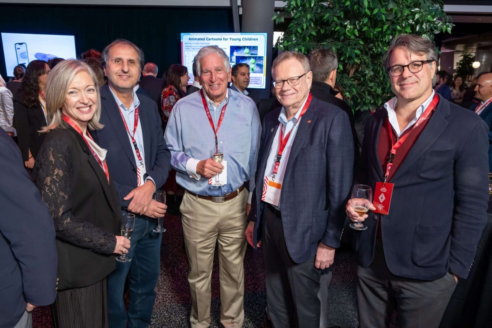 Illustrating the profound impact our Research Awards had on previous recipients, who have achieved amazing things, the evening featured interactive booths showcasing innovations and startups shaping the healthcare of tomorrow: Juno Technologies, a startup supported by our Impact Investment Program, presented their device for menstrual pain relief. Scientists Alexander Baldwin and Alexandre Reynaud shared unique digital brain therapies including a video game to help treat amblyopia. The Surgical Performance Enhancement and Robotics Centre (SuPER) team presented a virtual OR and surgical AI demo.
