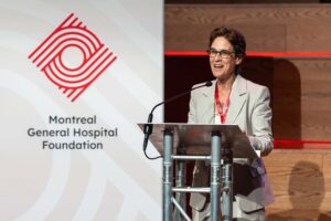 “I met Gerry when I was a medical student on his service and he has been a mentor and guide for me ever since,” says MUHC Surgeon-in-Chief Dr. Liane Feldman, who now has the same position once held by her mentor and leads the ambitious Future of Surgery initiative supported by our Foundation. Referencing Dr. Fried’s pioneering work in laparoscopic surgery – now ingrained into everyday medical practice – she revealed to the audience that, back in the day, she was the very first clinical fellow in the fellowship Dr. Fried established to train other surgeons in laparoscopic operations!